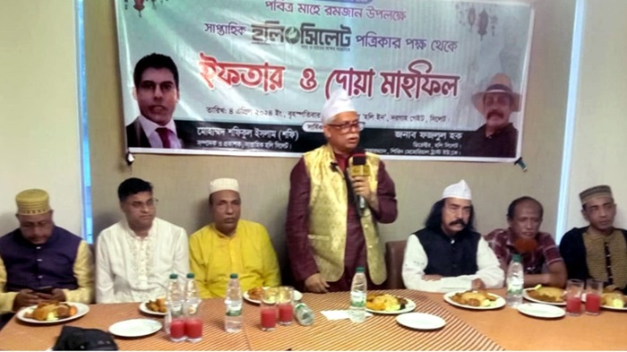 সাপ্তাহিক “হলি সিলেট” পত্রিকার নির্বাহী সম্পাদক মোঃ জহুরুল ইসলাম এর সভাপতিত্বে এবং অনলাইন দেশ টিভি লাইভ এর সম্পাদক হাসিদুল ইসলাম পিন্টু এর পরিচালনায় অনুষ্ঠিত ইফতার ও দোয়া মাহফিলে প্রধান অতিথির বক্তব্যে বাংলাদেশ আওয়ামীলীগ এর তিন বারের নির্বাচিত সাবেক সাংগঠনিক সম্পাদক ও হলি সিলেট পত্রিকার সম্পাদক মন্ডলীর সভাপতি এডভোকেট মিসবাহ উদ্দিন সিরাজ।