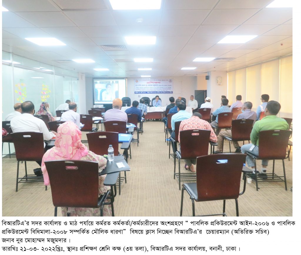 বিআরটিএ’র সদর কার্যালয় ও মাঠ পর্যায়ে কর্মরত/কর্মচারীদের অংশগ্রহণে পাবলিক প্রশিক্ষণ।