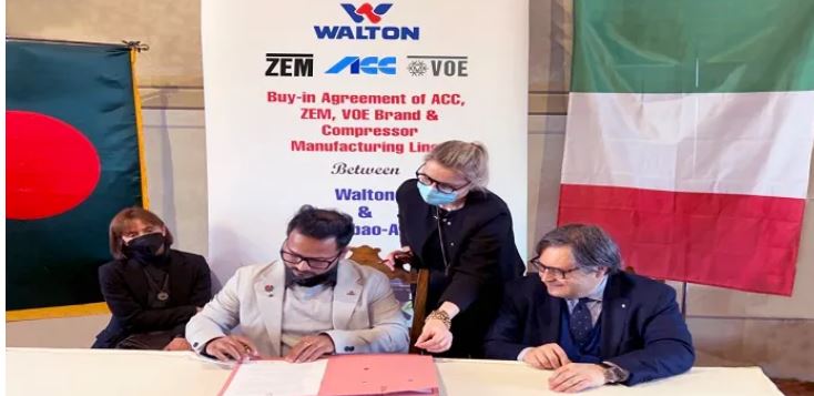 সম্প্রতি ইতালির বোরগো ভালবেলুনা মিউনিসিপাল-এর হেড কোয়ার্টারে এ সংক্রান্ত চুক্তি সম্পন্ন হয়। ওয়ালটন হাই-টেক ইন্ডাস্ট্রিজ পিএলসি’র ব্যবস্থাপনা পরিচালক ও সিইও গোলাম মুর্শেদ এবং এসিসি’র এক্সট্রাঅর্ডিনারি কমিশনার মাউরিজিও কাস্ত্রো চুক্তিতে স্বাক্ষর করেন।