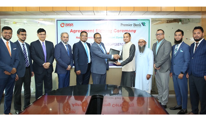 প্রিমিয়ার ব্যাংকের অতিরিক্ত ব্যবস্থাপনা পরিচালক শামসুদ্দিন চৌধুরী এবং নগদ এর এক্সিকিউটিভ ডিরেক্টর মারুফুল ইসলাম ঝলক নিজ নিজ প্রতিষ্ঠানের পক্ষে চুক্তিপত্র বিনিময় করেন।