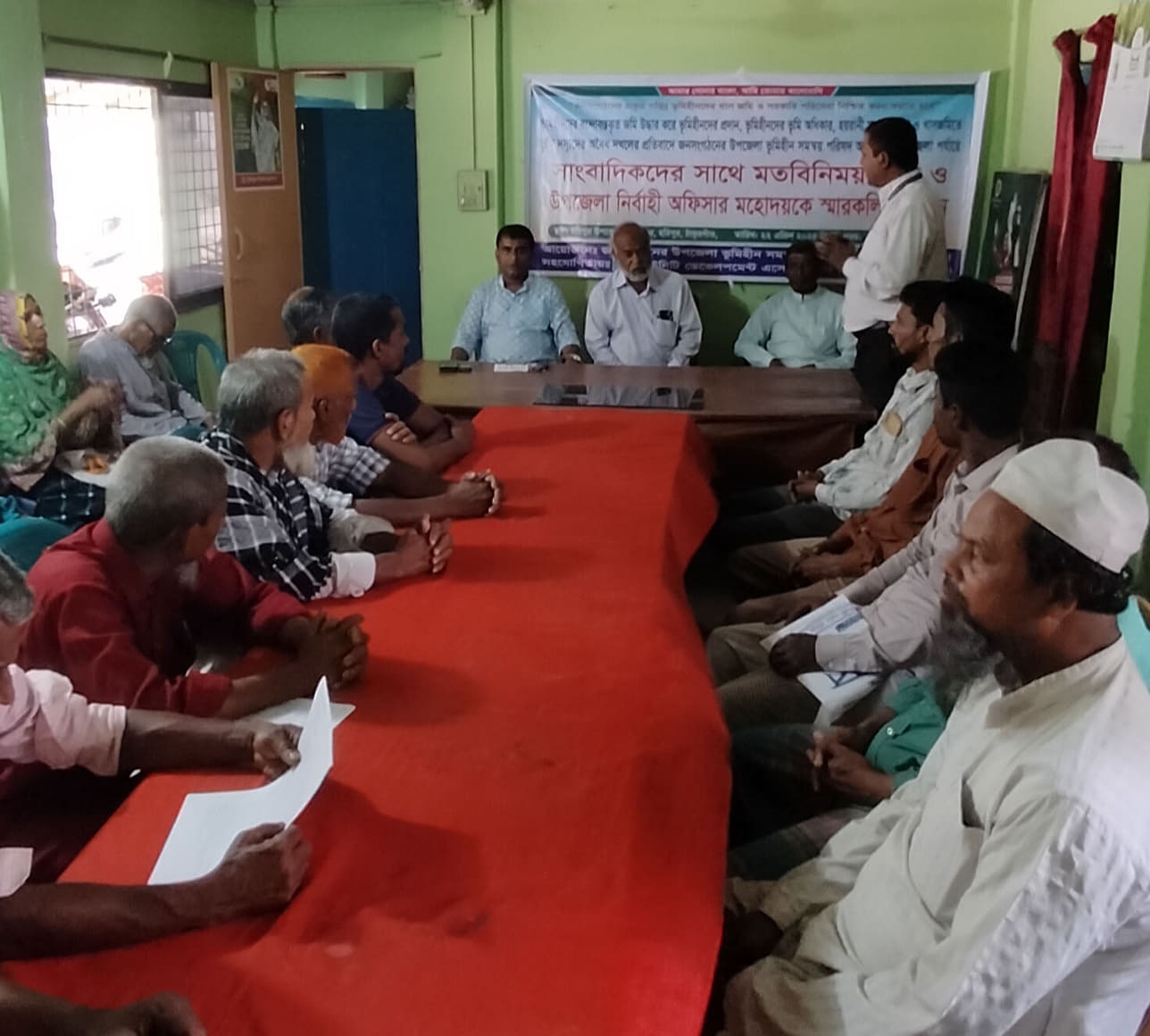 সোমবার সকাল সাড়ে ১১টায় উপজেলা ভূমিহীন সমন্বয় পরিষদের আয়োজনে ও কমিউনিটি ডেভেলপমেন্ট এসোসিয়েশন এর সহযোগিতায় প্রেসক্লাব হলরুমে ভূমিহীন সমন্বয় কমিটির সভাপতি মোবারক আলীর সভাপতিত্বে মতবিনিময় সভায় বক্তব্য রাখেন, হরিপুর প্রেসক্লাবের সভাপতি শফিকুলআজম চৌধুরী, সিডিএ সমন্বয়কারী আন লিক অফিসার জাহিদুর রহমান, সহ সভাপতি আলমামুন চৌধুরী, সম্পাদক আব্দুর রশিদ, সাংগঠনিক সম্পাদক আবুসালেহ মুসা, সাংবাদিক, জহিরুল ইসলাম জীবন, রাজু, বরকত, ওয়াসিম, সুজন সহ জনসংগঠনের সদস্য তরিকুল, ভুট্রু আলী, আব্দুল কাদের, রাবেয়া খাতুন, মেঘনাথ চন্দ্র প্রমুখ।