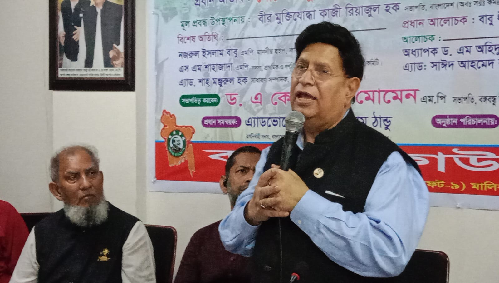 নিজস্ব প্রতিবেদকঃ আজ সংগঠনের কেন্দ্রীয় কার্যালয় মালিবাগ মোড়ের শাহজালাল কমপ্লেক্সের দশম তলায় বঙ্গবন্ধু মিলনায়তনে মুজিব নগর দিবস উপলক্ষে "মুজিব নগর সরকারের ধারাবাহিকিতায় বর্তমান সরকারের সফলতা" শীর্ষক আলোচনা সভায় সভাপতিত্ব করেন সংগঠনের সভাপতি সাবেক পররাষ্ট্রমন্ত্রী ও বর্তমান পররাষ্ট্র মন্ত্রণালয় সম্পর্কিত সংসদীয় স্থায়ী কমিটির চেয়ারম্যান জনাব ড. এ কে আব্দুল মোমেন এমপি।