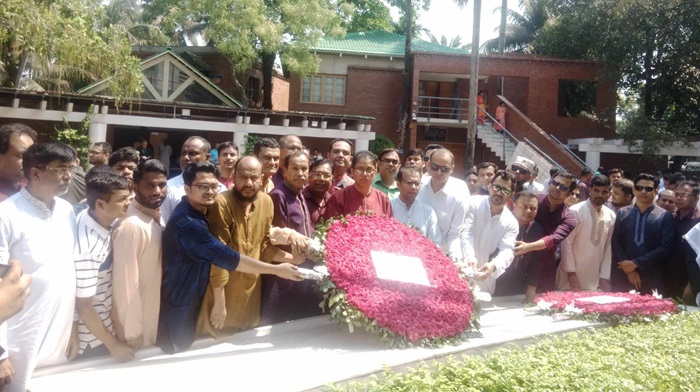 জাতির জনক বঙ্গবন্ধু শেখ মুজিবুর রহমানের সমাধিতে শ্রদ্ধাঞ্জলি নিবেদনকালে বঙ্গবন্ধু শেখ মুজিব মেডিক্যাল বিশ্ববিদ্যালয়ের ইউরোলজি বিভাগের অধ্যাপক ডা. একেএম খুরশিদুল আলম, হেমাটোলজি বিভাগের অধ্যাপক ডা. মোঃ আব্দুল আজিজ, সাবেক প্রক্টর অধ্যাপক ডা. সৈয়দ মোজাফফর আহমেদ, পাবলিক হেলথ এন্ড ইনফরমেটিক্স বিভাগের সহযোগী অধ্যাপক ডা. বিজয় কুমার পাল, বিএসএমএমইউ স্বাচিপ এর সহযোগী অধ্যাপক ডা. মোঃ আরিফুল ইসলাম জোয়ারদার টিটো, সহযোগী অধ্যাপক ডা. হাসান শাহরিয়ার আহমেদ, সহযোগী অধ্যাপক ডা. কেএম তারিকুল ইসলাম, সহযোগী অধ্যাপক ডা. আশীষ কুমার সরকার, সহকারী অধ্যাপক ডা. জাকির হোসেন সুমন, ডা. আব্দুল্লাহ আল মামুন, ডা. জাহান শামস নিটোল, টুঙ্গিপাড়া পৌর মেয়র শেখ তোজাম্মেল হক টুটুল, সাবেক মেয়র মোঃ ইলিয়াস হোসেন, টুঙ্গিপাড়া পৌর আওয়ামী লীগ সভাপতি শেখ সাইফুল ইসলাম, সাধারণ সম্পাদক মোঃ ফোরকান বিশ্বাস, যুগ্ম-সাধারণ সম্পাদক শেখ জিয়াউল বশির টুটুল, মাননীয় উপাচার্য মহোদয়ের একান্ত সচিব মোঃ আমিনুল ইসলাম পলাশ, সহকারী পরিচালক (অর্থ ও হিসাব) মোঃ সাইফুল ইসলাম প্রমুখসহ বিশ্ববিদ্যালয়ের বিভিন্ন স্তরের শিক্ষক, চিকিৎসক, কর্মকর্তা, নার্স, কর্মচারীবৃন্দ, স্বাচিপ এর বিশ্ববিদ্যালয় শাখার বিভিন্ন পর্যায়ের চিকিৎসকবৃন্দ, স্থানীয় আওয়ামী লীগের নেতৃবৃন্দ উপস্থিত ছিলেন।