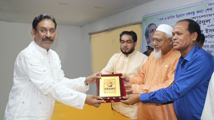 বঙ্গবন্ধু একাডেমীর উদ্যোগে ২৯ এপ্রিল ২০২৪ সোমবার সকালে জাতীয় প্রেসক্লাবের মওলানা আকরম খা মিলনায়তনে আয়োজিত ‘দেশ ও জাতির উন্নয়নে শেখ হাসিনার সরকারের বিকল্প নাই’ শীর্ষক আলোচনা সভা ও গুণীজন সম্মাননা প্রদান অনুষ্ঠানের প্রধান অতিথি ধর্ম বিষয়ক মন্ত্রী মোঃ ফরিদুল হক খান এমপি তাকে আনুষ্ঠানিকভাবে এই পদক প্রদান করেন।