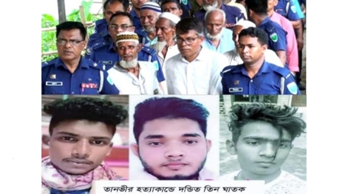 গ্রামের সৈয়দ আলীর ছেলে উজ্জ্বল মিয়া (২৫), নুরপুর গ্রামের মলাই মিয়ার ছেলে শান্ত (২৬) ও বাছিরগঞ্জ বাজারের জলিল কবিরাজের ছেলে জাহিদ মিয়া (২৮)। তিন বছরের কারাদণ্ডপ্রাপ্ত লিমন মরমা গ্রামের মৃত মরম আলীর ছেলে। সিলেটের দ্রুত বিচার ট্রাইব্যুনালের সরকারি কৌঁসুলি (পিপি) সরওয়ার আহমদ চৌধুরী বলেন, ‘আসামিরা পরিকল্পনা করে নির্মমভাবে তানভীরকে হত্যার পর লাশ পুঁতে রেখেছিল। একদিন পরই তাদের গ্রেফতার করেছিল পুলিশ। সেই সঙ্গে হত্যার কথা স্বীকার করেছে তারা। তাদের তথ্যমতে লাশ ও আলামত উদ্ধার করা হয়। আদালতে দেওয়া স্বীকারোক্তি অনুযায়ী ২১ জনের সাক্ষ্য গ্রহণ শেষে মামলার রায় দেন বিচারক। মামলার সংপ্তি বিবরণে জানা গেছে, তানভীরের প্রতিবেশী উজ্জ্বল বাড়ির পাশে সবজি ও ফল চাষ করতেন।