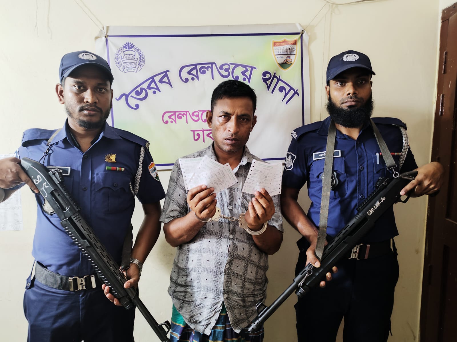 ভৈরব (কিশোরগঞ্জ) প্রতিনিধি: কিশোরগঞ্জের ভৈরব ও বাজিতপুর রেলওয়ে ষ্টেশন থেকে আন্তঃনগর ট্রেনের টিকেট সহ ২ চোরাকারবারীকে গ্রেফতার করেছে ভৈরব রেলওয়ে থানার পুলিশ।
