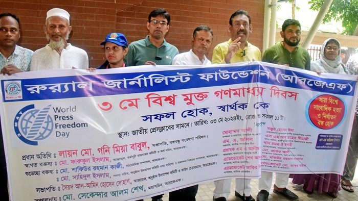 নিজস্ব প্রতিবেদকঃ রুর্যাল জার্নালিস্ট ফাউন্ডেশন (আরজেএফ) এর উদ্যোগে ৩ মে শুক্রবার সকাল ১১টায় জাতীয় প্রেসক্লাবের সামনে বিশ্ব মুক্ত গণমাধ্যম দিবস উপলক্ষে মানববন্ধন ও শোভাযাত্রা অনুষ্ঠিত হয়।