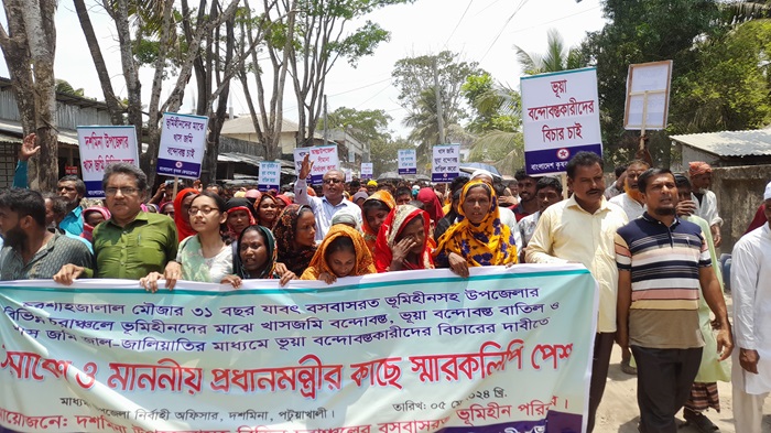 ৬ দফা দাবীতে শত শত ভূমিহীন পরিবারের সমাবেশ ও মিছিল