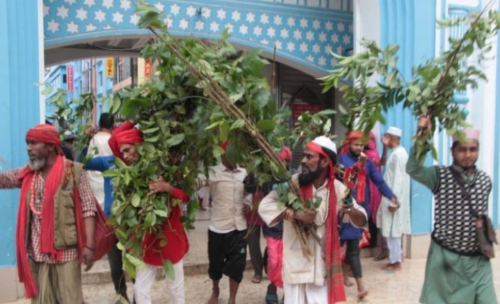 সিলেট প্রতিনিধি: দরগাহে হজরত শাহজালাল (র.)-এর বার্ষিক ওরস উপলক্ষে সিলেটে ঐতিহাসিক লাকড়ি তোড়া উৎসব অনুষ্ঠিত হয়েছে। সোমবার (৬ মে) বৃষ্টি উপেক্ষা করে শত শত ভক্ত আশেকানরা শাহজালালের মাজার প্রাঙ্গণে ছুঁটে যান। এ সময় ভক্তদের পরনে ছিল লাল জামা, মাথায় লালপট্টি।