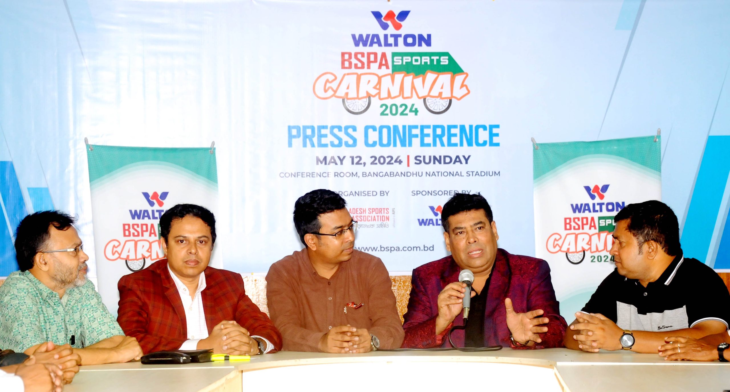 ওয়ালটন-বিএসপিএ স্পোর্টস কার্নিভাল সম্পর্কে বিস্তারিত জানানোর জন্য আজ রোববার (১২ মে) বঙ্গবন্ধু জাতীয় স্টেডিয়ামের সভাকক্ষে এক সংবাদ সম্মেলন অনুষ্ঠিত হয়। সংবাদ সম্মেলনে উপস্থিত ছিলেন বিএসপিএ’র সভাপতি রেজওয়ান উজ জামান রাজিব, ওয়ালটন হাই-টেক ইন্ডাস্ট্রিজ, পিএলসি’র জ্যেষ্ঠ নির্বাহী পরিচালক এফএম ইকবাল বিন আনোয়ার (ডন) ও সিনিয়র ডেপুটি এক্সিকিউটিভ ডিরেক্টর রবিউল ইসলাম মিল্টন, বিএসপিএ সাধারণ সম্পাদক মো. সামন হোসেন ও ক্রীড়া উপ-কমিটির চেয়ারম্যান কাজী শহীদুল আলম।