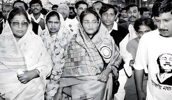 ঐতিহাসিক স্বদেশ প্রত্যাবর্তনের মধ্য দিয়ে শেখ হাসিনার নিরবচ্ছিন্ন দীর্ঘ সংগ্রাম শুরু হয়। দীর্ঘ ১৬ বছর ধরে সামরিক শাসক ও স্বৈরশাসনের বিরুদ্ধে চলে তার অকুতোভয় সংগ্রাম। জেল-জুলম, অত্যাচার কোনও কিছুই তাকে তার পথ থেকে টলাতে পারেনি একবিন্দু। শত প্রতিকূলতাতেও হতোদ্যম হননি কখনও। বাংলার মানুষের হারিয়ে যাওয়া অধিকার পুনরুদ্ধার করতে জীবনের ঝুঁকি নিয়ে তিনি বারবার স্বৈরাচারের রক্তচক্ষুকে উপেক্ষা করেছেন। আবির্ভূত হয়েছেন গণতন্ত্রের মানসকন্যা রূপে।