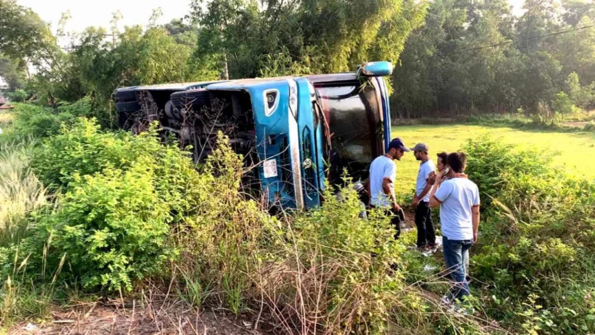 স্টাফ রিপোর্টারঃ কুমিল্লার চৌদ্দগ্রামে একটি যাত্রীবাহী বাস নিয়ন্ত্রণ হারিয়ে সড়কের পাশে উল্টে যায়। এতে ঘটনাস্থলেই বাসের পাঁচ যাত্রী নিহত হয়। এ সময় আহত হন আরও ১৫ যাত্রী।