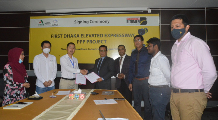 এসময় বসুন্ধরা বিটুমিনের পক্ষে চুক্তিতে সই করেন বসুন্ধরা গ্রুপের ব্যবস্থাপনা পরিচালকের সচিব মাকসুদুর রহমান এবং এসডিআরবি (শানডং হাই–স্পিড রোড অ্যান্ড ব্রিজ কোং লিমিটেড) ও সিনোহাইড্রো জেভির পক্ষে প্রতিষ্ঠানটির উপ–মহাব্যবস্থাপক লিউ জিং।