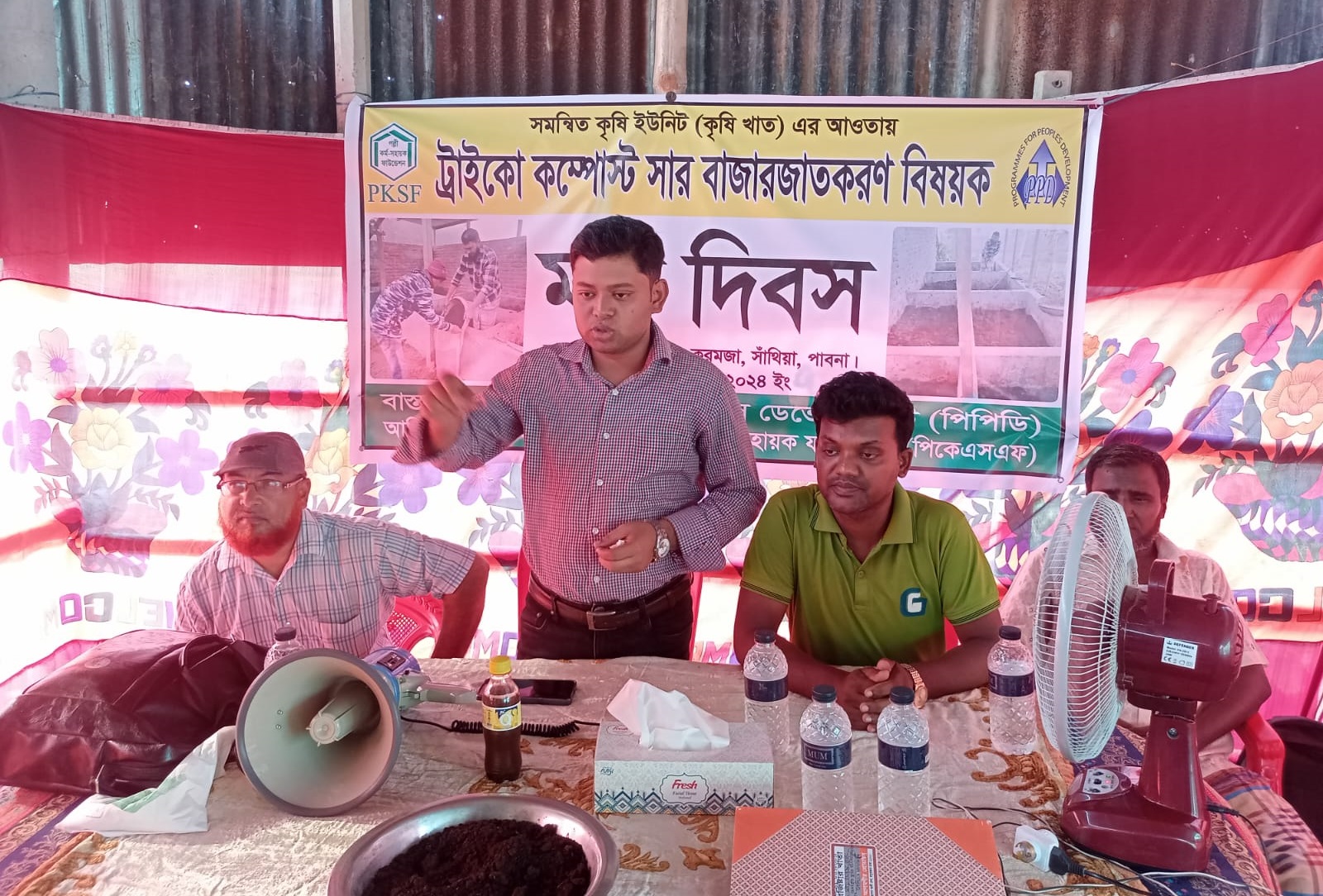 অনুষ্ঠানের শুরুতে কৃষি কর্মকর্তা অনুপ কুমার ঘোষ ট্রাইকো কম্পোষ্ট ব্যবহারে ফসলের উপকারিতা সম্পর্কে বিশদ আলোচনা করেন।