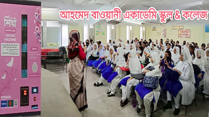 নিজস্ব প্রতিনিধিঃ পুরাতন ঢাকার আরমানিটোলায় অবস্থিত ঐতিহ্যবাহী আহমেদ বাওয়ানী একাডেমী স্কুল এন্ড কলেজে স্থাপিত হলো শিখা স্যানিটারী প্যাড ভেন্ডিং মেশিন। আমরা জানি যে দেশের মেয়েরা তথা নারীরা শিক্ষিত হলে একটি শিক্ষিত জাতি তৈরি হবে। নারী সুস্থতায় পিরিয়ড নিয়ে সমাজে যে ট্যাবু সেটা ভাঙতে হবে। সুস্থ থাকতে পিরিয়ড সচেতনতা তৈরি করতে হবে। অনেক সময় পিরিয়ড কালীন জটিলতায় তারা হয়তো ক্লাসে আসছে না। সঠিক ব্যবস্থা না নেয়ায় নানা জটিলতায় ভুগছে। তাই এই সকল সমস্যার সমাধান হিসেবে তারা যেন হাতের কাছেই প্রয়োজনের সময় স্যানিটেশন প্যাড পায় সেই সরবরাহ নিশ্চিত করতে আমাদের সম্মানিত সভাপতি ঢাকা-৭ আসনের মাননীয় সংসদ সদস্য জনাব মোহাম্মদ সোলায়মান সেলিম সাহেবের পরামর্শে আমরা আজ থেকে আরো এক ধাপ নারী বান্ধব প্রতিষ্ঠানে পরিণত হলো।