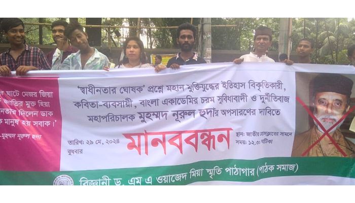 বিশ্বস্ত সূত্রে আমরা আরও জানতে পেরেছি, বাংলাদেশ আওয়ামী লীগের আদর্শ ও চেতনাবিরোধী এবং বিএনপি-জামায়াতের আশীর্বাদপুষ্ট ও জিয়াউর রহমানকে 'স্বাধীনতার ঘোষক' সাব্যস্তকারী চরম সুবিধাবাদি কবিতার গিরগিটি কবি মুহম্মদ নূরুল হুদার মতো ব্যক্তির বাংলা একাডেমির মহাপরিচালক পদে থাকা জাতির জন্য অত্যন্ত লজ্জাকর, যা বাংলাদেশের সুস্থধারার শিল্পসংস্কৃতি ও সাহিত্যের জন্য একটি অশনিসংকেত বলে আমরা মনে করি।