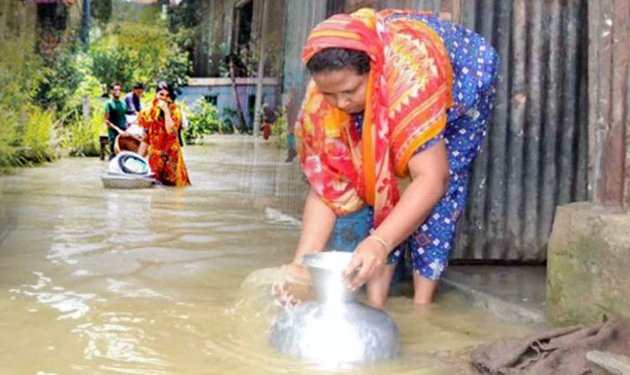 সিলেট নগরের উপশহর, তের রতন, সোবহানীঘাট, মেন্দিবাগ, কাজিরবাজার এলাকা ঘুরে এমন চিত্র দেখা গেছে। জলাবদ্ধ নগরের সোবহানীঘাট এলাকার এক ভূক্তভোগী বলেন, ‘পানির মাঝে ভাসতাছি। না আছে খাওয়ার পানি, না আছে নাওয়ার (গোসলের) পানি, না আছে ব্যবহারের পানি। আমরা কিভাবে চলমু। সারা শরীরে চুলকাচ্ছে।’