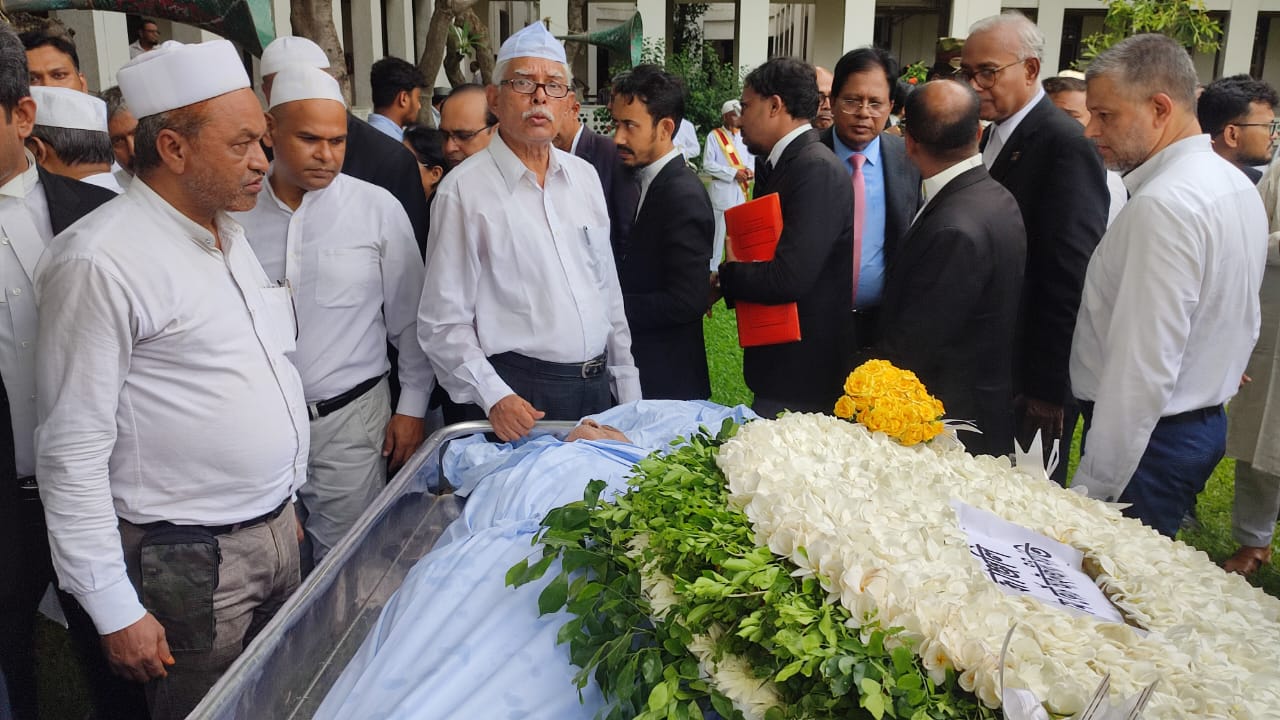 নিজস্ব প্রতিবেদকঃ সুপ্রিম কোর্টের সবুজ চত্বরে বাদ যোহর জানাযা অনুষ্ঠিত হয়। জানাযায় প্রধান বিচারপতিসহ উভয় বিভাগের বিচারপতিবৃন্দ, বারের নির্বাচিত কর্মকর্তাগণ, বিপুল সংখ্যক আইনজীবী ও শুভাকাঙ্ক্ষীগণ উপস্থিত ছিলেন। তাঁকে বনানী কররস্হানে দাফন করা হয়। উল্লেখ্য, ৩ জুন ঢাকার উত্তরার বাসভবনে ইন্তেকাল করেন।