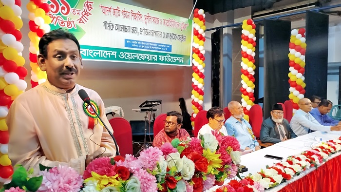 বাংলাদেশ ওয়েলফেয়ার ফাউন্ডেশন-এর ১১তম প্রতিষ্ঠা বার্ষিকী উপলক্ষে ৭ জুন শুক্রবার বিকেলে ঢাকার সেগুনবাগিচাস্থ কেন্দ্রীয় কচি-কাঁচার মেলা মিলনায়তনে আয়োজিত ‘আদর্শ জাতি গঠনে শিক্ষাবিদ, সুশীল সমাজ ও জনপ্রতিনিধিদের ভূমিকা’ শীর্ষক আলোচনা সভা, গুণীজন সম্মাননা প্রদান ও সাংস্কৃতিক অনুষ্ঠানে উদ্বোধক হিসেবে তিনি এসব কথা বলেন।
