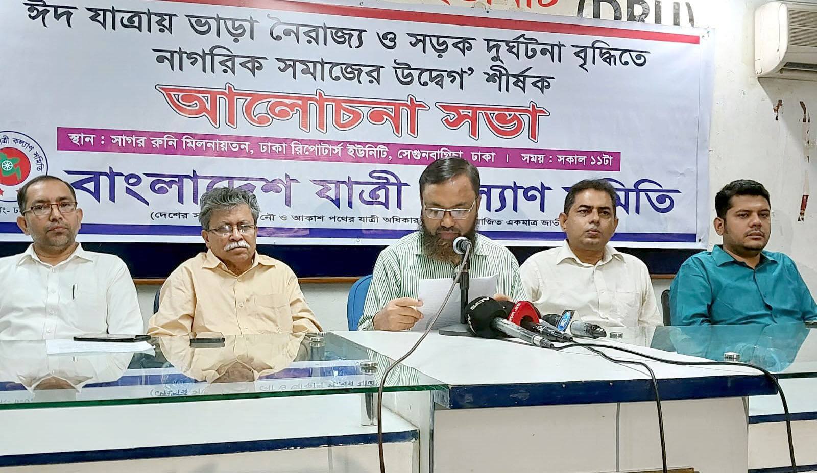 আজ ১০ জুন সোমবার সকালে নগরীর ঢাকা রিপোটার্স ইউনিটিতে “ প্রতিবছর ঈদে গণপরিবহনে ভাড়া নৈরাজ্য ও সড়ক বৃদ্ধিতে নাগরিক সমাজের উদ্বেগ ” শীর্ষক এক আলোচনা সভায় অংশ নিয়ে সমাজের বিশিষ্ট নাগরিকেরা এই দাবী তুলেন। যাত্রী অধিকার সুরক্ষায় নিয়োজিত সংগঠন বাংলাদেশ যাত্রী কল্যাণ সমিতি এই আলোচনা সভার আয়োজন করে।