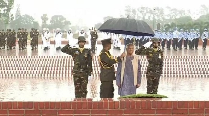 সাভারে জাতীয় স্মৃতিসৌধে মহান মুক্তিযুদ্ধে শহীদদের প্রতি শ্রদ্ধা জানিয়েছেন অন্তর্বর্তী সরকারের প্রধান উপদেষ্টা ড. মুহাম্মদ ইউনূস।