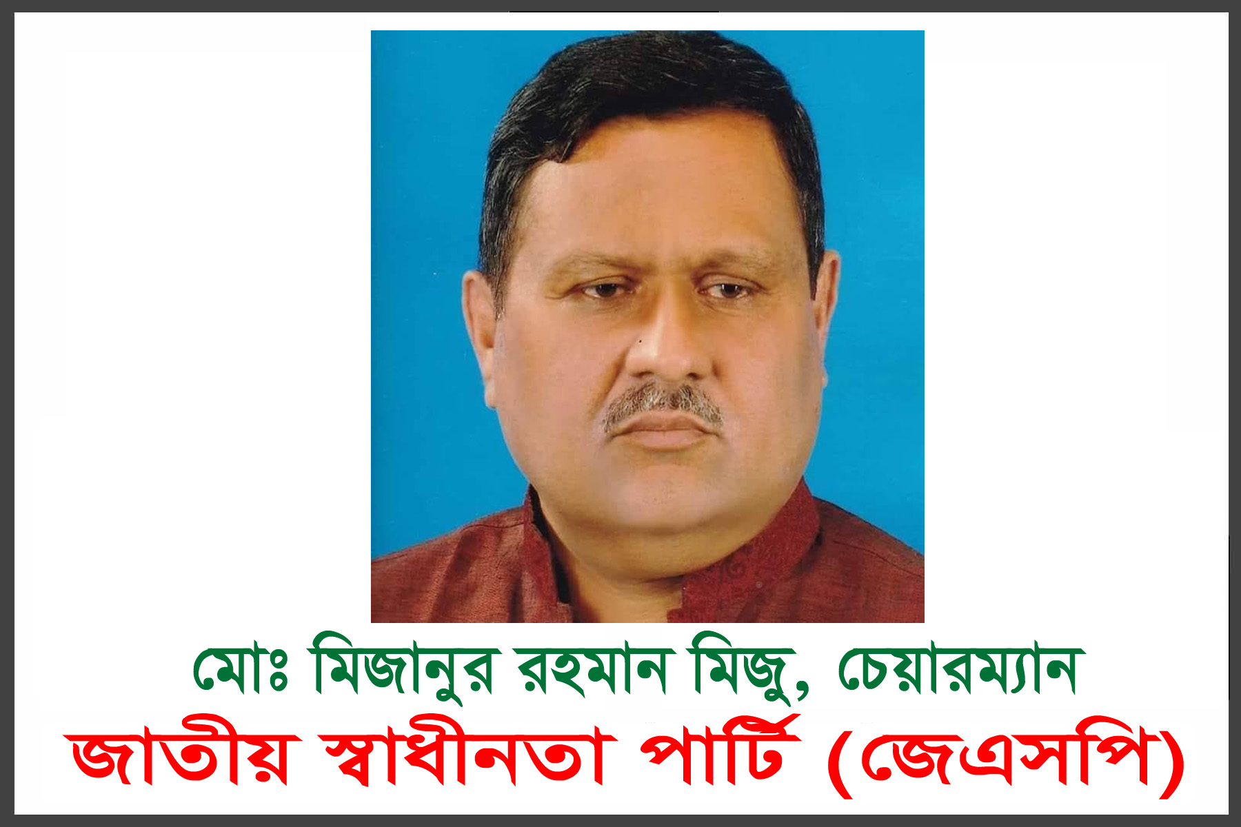 নিজস্ব প্রতিবেদকঃ দেশের ক্রান্তিকালে অন্তর্বর্তীকালীন সরকারের গুরু দায়িত্ব গ্রহণ করায় প্রধান উপদেষ্টা নোবেল জয়ী ড. মুহাম্মদ ইউনূস ও তাঁর উপদেষ্টা পরিষদ কে অভিনন্দন জানিয়েছেন জাতীয় স্বাধীনতা পার্টি (জেএসপি)’র চেয়ারম্যান জননেতা মিজানুর রহমান মিজু।
