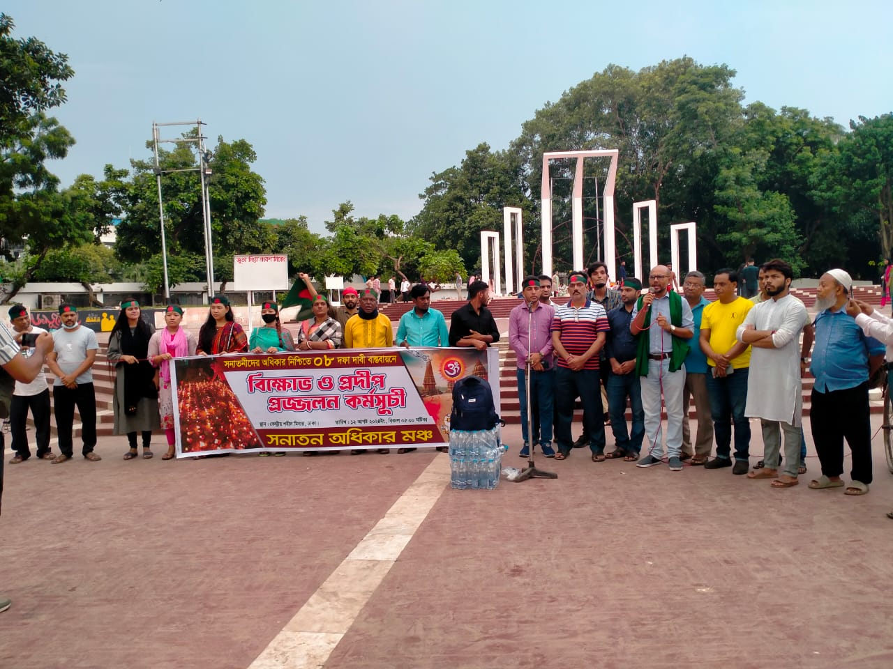 নিজস্ব প্রতিবেদকঃ অদ্য ১২ আগস্ট ২০২৪ খ্রিঃ তারিখ সোমবার বিকাল ৫.৩০ ঘটিকায় সনাতন অধিকার মঞ্চ-এর উদ্যেগে সারাদেশে সাম্প্রদায়িক হামলা, দোকানপাট-বাড়িঘর লুটপাট, মঠমন্দির ভাংচুর, অগ্নিসংযোগ অনতিবিলম্বে বন্ধে দেশবাসীকে আহবান ও বৈষম্যমুক্ত দেশ গড়ার প্রত্যয়ে ০৮ দফা দাবী বাস্তবায়নের লক্ষ্যে কেন্দ্রীয় শহিদ মিনার, ঢাকায় বিক্ষোভ ও প্রদীপ প্রজ্জলন কর্মসূচী অনুষ্ঠিত হয়।