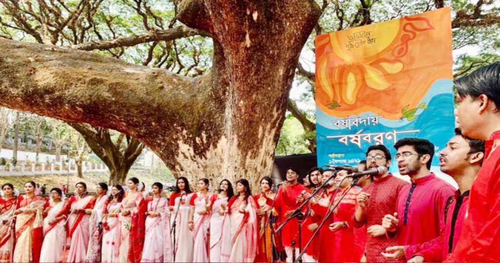 বর্ষবরণ করে নিতে ডিসি হিলে দর্শকদের উপচেপড়া ভিড়। বর্ষবরণের ১ম অধিবেশনে ‘সংগীত ভবন, জয়ন্তী, ছন্দানন্দ সাংস্কৃতিক পরিষদ, গুরুকুল সংগীত একাডেমি, সুর-সাধনা সংগীতালয়, গীতধ্বনি, ইমন কল্যাণ সংগীত বিদ্যাপীঠ, সৃজামি সাংস্কৃতিক অংগন, নটরাজ নৃত্যাঙ্গন একাডেমি, স্কুল অব ওরিয়েন্টাল ডান্স, ওডিসি অ্যান্ড টেগোর ডান্স মুভমেন্ট সেন্টার, গুরুকুল, নৃত্যম একাডেমি, ঘুঙুর নৃত্যকলা কেন্দ্র, সঞ্চারী নৃত্যকলা একাডেমি, নৃত্য নিকেতন, দি স্কুল অব ফোক ডান্স, বোধন আবৃত্তি পরিষদ, প্রমা আবৃত্তি সংগঠন, স্বরনন্দন প্রমিত বাংলা চর্চা কেন্দ্র ও বিভাস আবৃত্তি চর্চা কেন্দ্র’ সংগঠনের শিল্পীরা সাংস্কৃতিক পরিবেশনায় অংশগ্রহণ করছে।