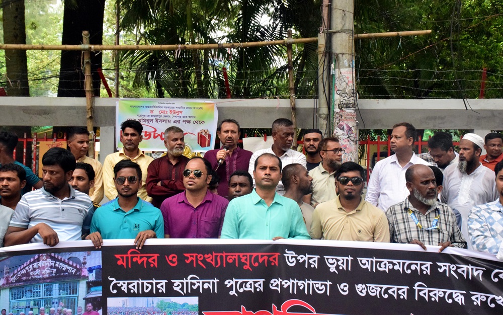 ১৩ আগস্ট মঙ্গলবার সকাল ১১ টায় জাতীয় প্রেসক্লাবের সামনে বাংলাদেশ জাতীয় মানবাধিকার সমিতির উদ্যোগে “মন্দির ও সংখ্যালঘুদের উপর ভুয়া আক্রমনের সংবাদ কেনÑশাহবাগে ওরা কারা? স্বৈরাচার হাসিনা পুত্রের প্রপাগান্ডা ও গুজবের বিরুদ্ধে রুখে দাঁড়াও বাংলাদেশ” শীর্ষক নাগরিক মানববন্ধন অনুষ্ঠিত হয়।