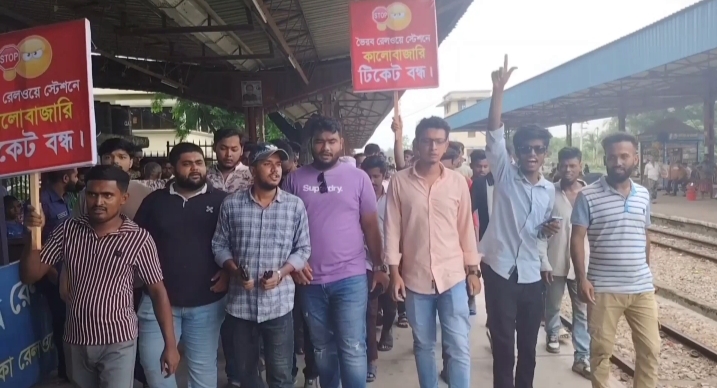 আজ মঙ্গলবার (১৩ আগষ্ট) সকালে রেলস্টেশনের টিকিট কাউন্টারের সামনে এ সমাবেশ করে তারা। এসময় তারা টিকিট কালোবাজারি বন্ধে দাবিতে বিভিন্ন স্লোগান শেষে বক্তব্য দেন।