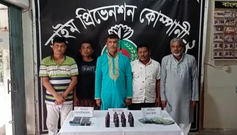 তাদের নিকট হতে ১১ বোতল অবৈধ নেশাজাতীয় মাদক দ্রব্য ফেন্সিডিল, নগদ এক লক্ষ পচিশ হাজার তিনশত টাকা, ৬টি মোবাইল, ৮টি সিমকার্ড, ও ১টি প্রাইভেটকার জব্দ করা হয়।
