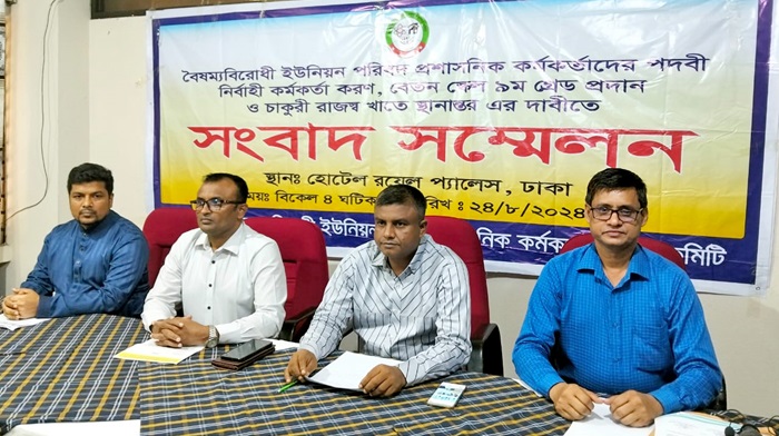 সংবাদ সম্মেলনে লিখিত বক্তব্যে মোঃ মাহবুব আলম মোল্লা বলেন, পৌরসভা, সিটি কর্পোরেশন, উপজেলা পরিষদ, জেলা পরিষদের ন্যায় ইউনিয়ন পরিষদের সচিব পদের পদনাম নির্বাহী কর্মকর্তা করতে হবে। ইউনিয়ন পরিষদের সচিবের বর্তমান পদনাম স্থানীয় সরকার (ইউনিয়ন পরিষদ), সংশোধিত আইন-২০২৪ এ ইউনিয়ন পরিষদ প্রশাসনিক কর্মকর্তা করা হয়েছে যা চরম বৈষম্যমূলক। নির্বাহী কর্মকর্তা পদবীর সাথে সামঞ্জস্যপূর্ণ বেতন স্কেল ৯ম গ্রেড প্রদান করতে হবে। চাকুরী রাজস্ব খাতে স্থানান্তরসহ ডেপুটেশনে সরকারি কর্মকর্তা হিসেবে ইউনিয়ন পরিষদে পদায়ন করতে হবে। দাবি ও সংস্কার সমূহ অবিলম্বে বাস্তবায়নের ব্যবস্থা গ্রহণ না করলে বৈষম্যবিরোধী ইউনিয়ন পরিষদ, প্রশাসনিক কর্মকর্তা সমিতি অবিলম্বে সময়োপযোগী কর্মসূচি রাজপথে পালন করবে।