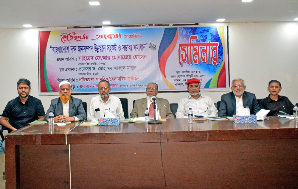 নিজস্ব প্রতিবেদকঃ শনিবার (২৪ আগস্ট) বিকেল ৩টায় জাতীয় প্রেসক্লাবের জহুর হোসেন চৌধুরী হলে মাসিক ইতিহাস অন্বেষার উদ্যোগে ‘বাংলাদেশে দক্ষ জনসম্পদ উন্নয়নে সংকট ও সম্ভাব্য সমাধান’ শীর্ষক এক সেমিনার অনুষ্ঠিত হয়।