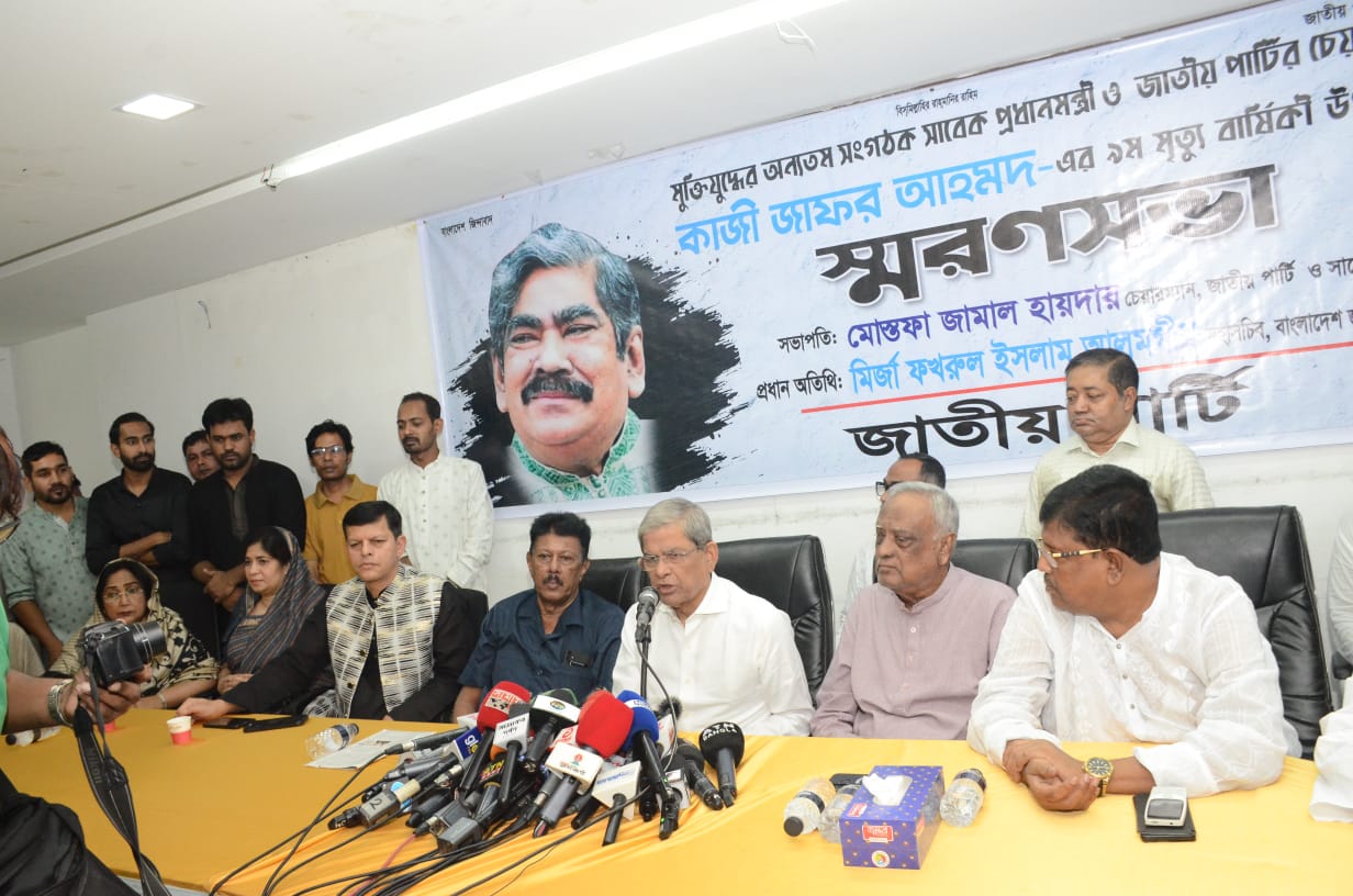নিজস্ব প্রতিবেদকঃ মুক্তিযুদ্ধের অন্যতম সংগঠক, বীর মুক্তিযোদ্ধা, সাবেক প্রধানমন্ত্রী ও জাতীয় পার্টির চেয়ারম্যান কাজী জাফর আহমদ এর ৯ম মৃত্যুবার্ষিকী উপলক্ষে আজ ২৬ আগস্ট সোমবার সকাল ১১টায় জাতীয় প্রেস ক্লাবে স্মরণ সভা অনুষ্ঠিত হয়।