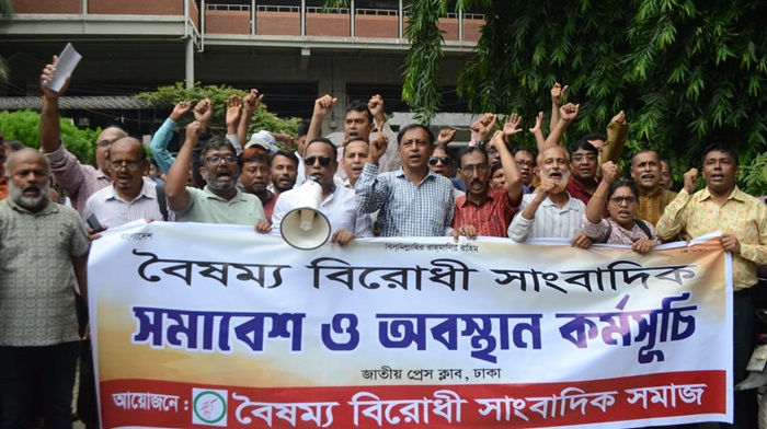 ২৮ আগস্ট, বুধবার দুপুরে জাতীয় প্রেসক্লাবে বৈষম্যবিরোধী সাংবাদিক সমাজ আয়োজিত পূর্ব ঘোষিত বিক্ষোভ সমাবেশ ও অবস্থান কর্মসূচি পালন করা হয়।