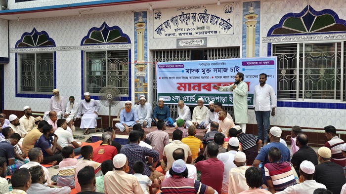 নারায়ণগঞ্জ প্রতিনিধি: নারায়ণগঞ্জের রূপগঞ্জের কায়েতপাড়ায় ৪ গ্রামের মাদককারবারি বাড়িতে সাইনবোর্ড দেয়া ও মাদক মুক্ত সমাজ গঠনের দাবীতে গ্রামবাসির আয়োজনে মানববন্ধন ও বিক্ষোভ সভা ও মিছিল করেছেন স্থানীয় মুসুল্লি ও হিন্দু সম্প্রদায়ের বাসিন্দারা।