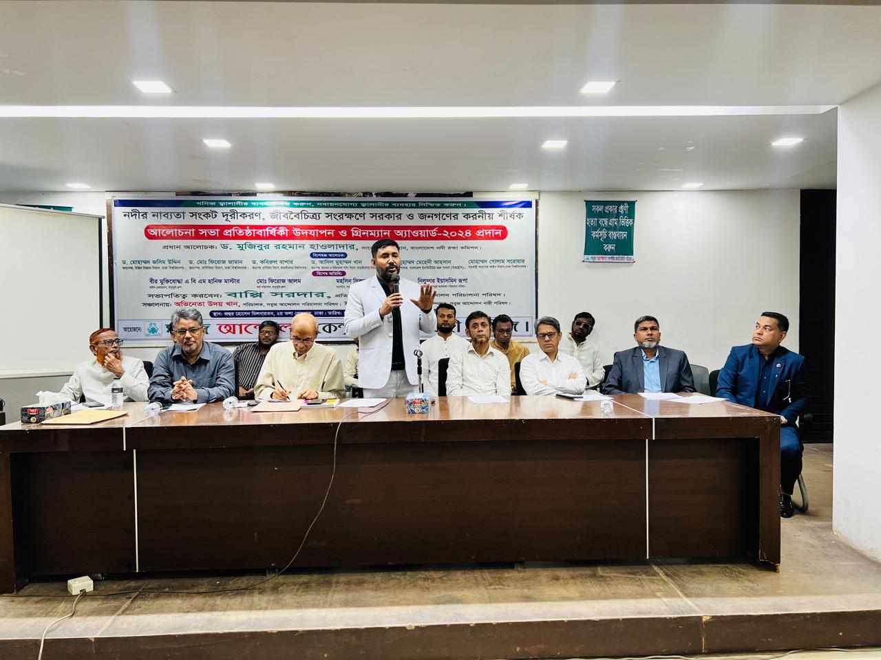 তিনি বলেন, সারা বাংলাদেশে বর্তমানে ১০০৮ টি নদী থাকলেও যার শতকরা ৯০ ভাগ নদী নাব্যতা সংকটে ভুগছে। ইতোমধ্যে দেশের শতাধিক নদী বিলীন হয়ে গেছে। ঢাকা বিভাগে ১৬৮ টি, বরিশাল বিভাগে ৯০ টি, খুলনা বিভাগে ১২৪ টি, রাজশাহী বিভাগের ১১০ টি, রংপুর বিভাগে ২৬৮ টি, ময়মনসিংহ বিভাগে ১৩৫ টি, সিলেট বিভাগে.. নদী রয়েছে। সারা বাংলাদেশে ২৪১৪০ কিলোমিটার দূরে জলরাশি প্রবাহিত হয়েছে। নদীর পাড় দখল ও দূষণে জর্জরিত। জেলাভিত্তিক জরিপে দেখা গেছে শহরের মধ্য দিয়ে প্রবাহিত শতকরা ১০০ ভাগ নদী দখল ও দূষণের শিকার। সামগ্রিক অর্থে নদীর আর্থ—সামাজিক উন্নয়ন হতে পারতো বাংলাদেশের অর্থনীতির চালিকাশক্তি কিন্তু বর্তমানে তা গলার কাঁটা হয়ে দাঁড়িয়েছে। ক্ষমতার সাথে জড়িত রাজনীতিবিদদের প্রত্যক্ষ ইন্দনে নদীর দখল বাণিজ্য পরিচালিত হচ্ছে।