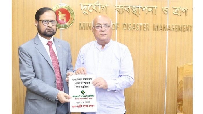 ০৯ সেপ্টেম্বর ২০২৪ তারিখে স্ট্যান্ডার্ড ব্যাংকের ভারপ্রাপ্ত ব্যবস্থাপনা পরিচালক ও সিইও মোহাম্মদ মোহন মিয়া বাংলাদেশ সচিবালয়ে গণপ্রজাতন্ত্রী বাংলাদেশের অন্তর্বর্তীকালীন সরকারের দূর্যোগ ব্যবস্থাপনা ও ত্রাণ মন্ত্রণালয়ের মাননীয় উপদেষ্টা জনাব ফারুক-ই-আজম, বীর প্রতীক-এর কাছে অনুদানের চেক হস্তান্তর করেন।