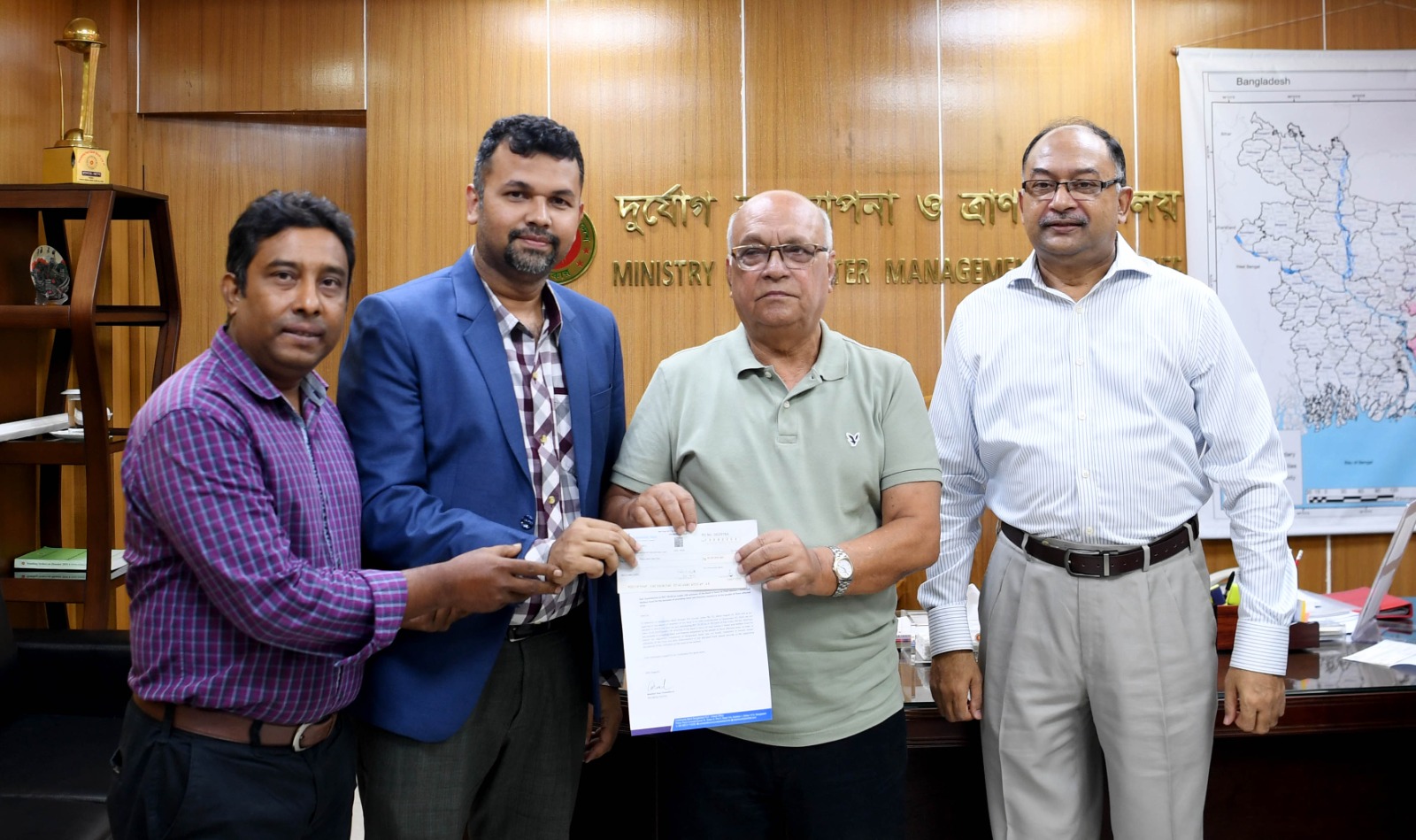 মঙ্গলবার, ১০ সেপ্টেম্বর, ২০২৪ সচিবালয়ে দুর্যোগ ব্যবস্থাপনা ও ত্রাণ মন্ত্রণালয়ের উপদেষ্টা জনাব ফারুক ই আজম, বীরপ্রতীকের হাতে অনুদানের ৩০ লাখ টাকার পে-অর্ডার তুলে দেন কমিউনিটি ব্যাংকের টেকসই অর্থায়ন ইউনিটের সদস্য জনাব মো. হাসনাত খান রিজভী এবং মার্কেটিং বিভাগের কর্মকর্তা জনাব দিদারুল করিম।