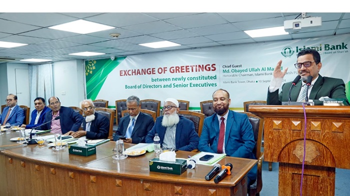 নিজস্ব প্রতিবেদকঃ ইসলামী ব্যাংক বাংলাদেশ পিএলসি-এর নবগঠিত পরিচালনা পর্ষদের সাথে প্রধান কার্যালয়ের নির্বাহীদের মতবিনিময় সভা ১০ সেপ্টেম্বর ২০২৪, মঙ্গলবার ইসলামী ব্যাংক টাওয়ারে অনুষ্ঠিত হয়। ব্যাংকের চেয়ারম্যান মোঃ ওবায়েদ উল্লাহ আল মাসুদ এতে প্রধান অতিথির বক্তব্য দেন।