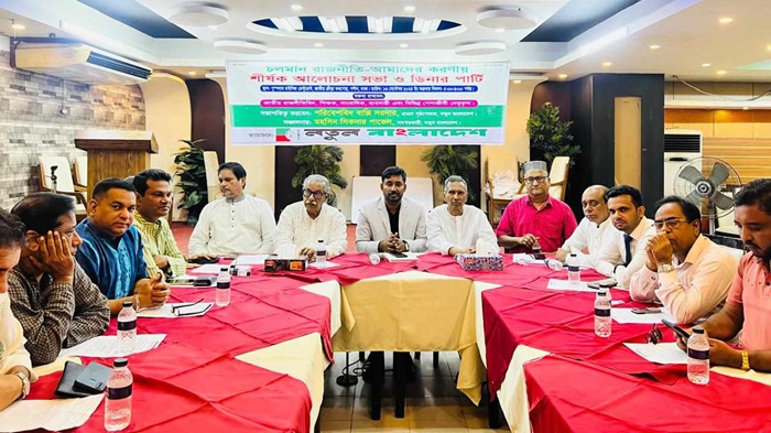 নতুন বাংলাদেশ'র প্রধান পৃষ্ঠপোষক পরিবেশবিদ বাপ্পি সরদার'র সভাপতিত্বে নতুন বাংলাদেশ'র সমন্বয়কারী বিশিষ্ট ব্যবসায়ী মহসিন সিকদার পাভেল সঞ্চালনায় আমন্ত্রিত অতিথি হিসেবে উপস্থিত ছিলেন সাবেক এমপি শাহ মোঃ আবু জাফর, সাবেক রাষ্ট্রদূত ড. ইঞ্জি. মোঃ রফিকুল ইসলাম, বীরমুক্তিযোদ্ধা এটিএম গোলাম মাওলা চৌধুরী, বাংলাদেশ স্বতন্ত্র প্রার্থী ঐক্য পরিষদের চেয়ারম্যান আলহাজ্ব মোঃ আব্দুর রহিম, বিকল্প ধারার সাবেক প্রেসিডিয়াম সদস্য এনায়েত কবির, কূটনৈতিক ব্যক্তিত্ব ও বিশিষ্ট ব্যবসায়ী শিবলী সাদিক, সাবেক ট্যাক্স কমিশনার মোঃ আসাদুজ্জামান, প্রত্যাশা বাংলাদেশ'র চেয়ারম্যান আবদুল্লাহ আল মামুন, বাংলাদেশ কংগ্রেসের যুগ্ম মহাসচিব আব্দুল্লাহ আল মামুন, রাষ্ট্রচিন্তক মোঃ হাবিবুর রহমান, কৃষক শ্রমিক জনতা লীগের যুব আন্দোলনের সভাপতি হাবিবুর নবী সোহেল, মানবাধিকার ব্যক্তিত্ব শিক্ষাবিদ উপাধ্যক্ষ নুরুজ্জামান হীরা, টিক্যাবের আহ্বায়ক মুর্শিদুল হক সহ শতাধিক সংগঠক। আলোচনায় চলমান রাজনীতি নিয়ে আলোচকরা বর্তমান সরকারকে সমর্থনের পাশাপাশি উপদেষ্টা পরিষদে তরুণ প্রজন্মের আরও বেশ কয়েকজন সুনাগরিকে নিয়োগ দেওয়ার দাবি জানান।
