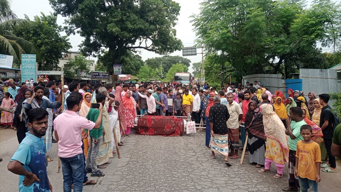 দিনাজপুর প্রতিনিধি - দিনাজপুরের বীরগঞ্জে জীবন (২৫) নামীয় এক যুবক কে চোর সন্দেহে ঘুমন্ত অবস্থায় বাড়ি হতে ডেকে এনে জ্যোৎস্না ফিলিং ষ্টেশনের স্বত্ত্বাধিকারী রতন কুমার সাহা রেন্টুর মিলের গোডাউন পাম্পের জেনারেটর রুমে বেধে রেখে পিটিয়ে হত্যা করার প্রতিবাদে ও আসামিদের গ্রেপ্তারের দাবিতে ঢাকা-পঞ্চগড় মহাসড়কে ১৬ সেপ্টেম্বর সকাল ৯ টায় লাশ রাস্তায় রেখে বিক্ষোভ করছে এলাকাবাসী।