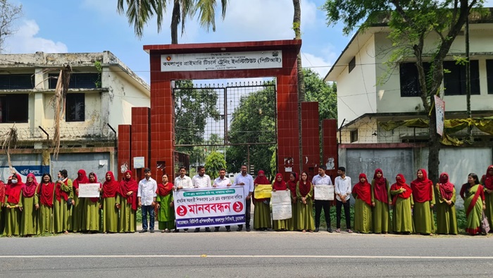 চুয়াডাঙ্গা প্রতিনিধি: প্রাথমিক সহকারী শিক্ষকদের দশম গ্রেড বাস্তবায়নের যৌক্তিক দাবিতে ১৯ এ সেপ্টেম্বর বৃহস্পতিবার চুয়াডাঙ্গা জেলার কমলাপুর পিটিআই-তে দশম গ্রেড বাস্তবায়নের দাবিতে মানববন্ধন করেছেন বিটিপিটি প্রশিক্ষণরত প্রাথমিকের সহকারী শিক্ষকরা।