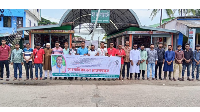 শনিবার (২১ সেপ্টম্বর) সকাল ১১টায় দুমকি নতুন বাজার এলাকায় উপজেলায় বিভিন্ন প্রিন্ট ও ইলেক্ট্রনিক মিডিয়ায় কর্মরত গণমাধ্যম কর্মীরা অংশ নেন। প্রেসক্লাব দুমকি'র সভাপতি মোঃ হারুন অর রশিদ এর সভাপতিত্বে অনুষ্ঠিত মানববন্ধনে বক্তৃতা করেন দৈনিক নয়া দিগন্ত প্রতিনিধি মোঃ কামাল হোসেন, মোঃ সাইদুর রহমান (দৈনিক ইনকিলাব) মোঃ রিয়াজুল ইসলাম (দৈনিক আমাদের নতুন সময়)।