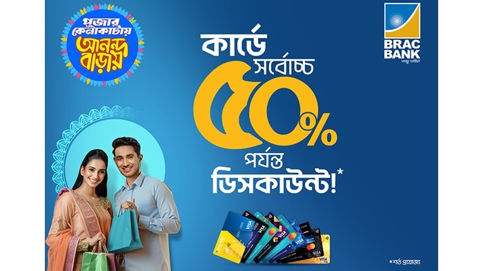 নিজস্ব প্রতিবেদক: আসন্ন দুর্গাপূজার আনন্দ আরও বাড়িয়ে দিতে ব্র্যাক ব্যাংক দিচ্ছে দেশের শীর্ষ ব্র্যান্ডগুলোর ওপর আকর্ষণীয় ছাড়, ক্যাশব্যাক এবং রিওয়ার্ড পয়েন্ট অফার।