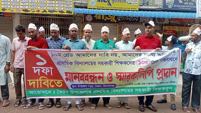 ১০ম গ্রেডের দাবিতে সহকারী শিক্ষকদের ভৈরবে মানববন্ধন