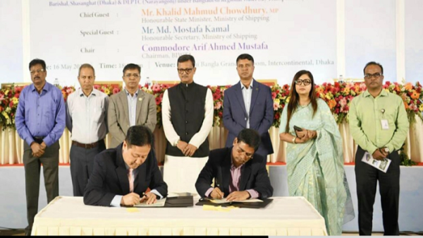 নৌখাতের উন্নয়নে প্রায় ৮৩০ কোটি টাকার ছয়টি প্রকল্প বাস্তবায়নের চুক্তি হয়েছে। বিশ্ব ব্যাংকের অর্থ সহায়তায় এসব প্রকল্প বাস্তবায়ন হবে। মঙ্গলবার (১৬ মে) ঢাকায় হোটেল রূপসী বাংলায় ছয়টি প্রকল্পের নির্মাণ ও