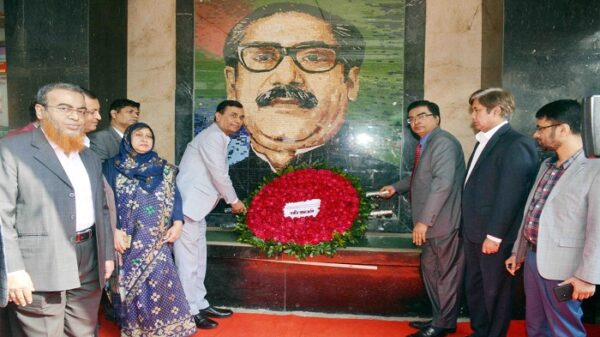 নিজস্ব প্রতিবেদকঃ জাতির পিতা বঙ্গবন্ধু শেখ মুজিবুর রহমানের ঐতিহাসিক স্বদেশ প্রত্যাবর্তন দিবস উপলক্ষে জাতির পিতার প্রতিকৃতিতে শ্রদ্ধা নিবেদন করেছে রাষ্ট্রায়ত্ব রূপালী ব্যাংক লিমিটেড। মঙ্গলবার (১০ জানুয়ারি) ব্যাংকের প্রধান কার্যালয়ে স্থাপিত