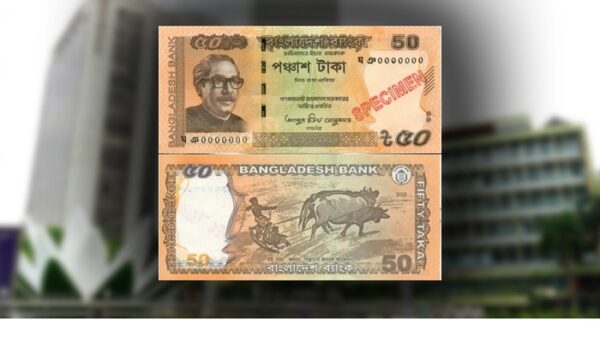 ৫০ টাকার নতুন ব্যাংক নোট বাজারে আসছে। গভর্নর আব্দুর রউফ তালুকদারের স্বাক্ষর সংবলিত এ ব্যাংক নোট আগামী রোববার (৮ জানুয়ারি) বাংলাদেশ ব্যাংকের মতিঝিল অফিস থেকে ইস্যু করা হবে। পরবর্তীতে কেন্দ্রীয়