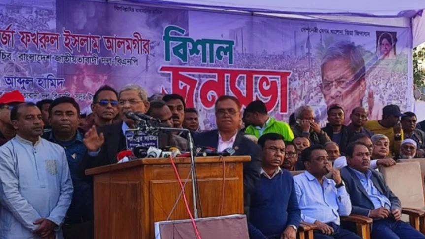 বিএনপির মহাসচিব মির্জা ফখরুল ইসলাম আলমগীর বলেছেন, ‘আপনারা কি সত্যি সত্যি পরিবর্তন চান নাকি আবার ওই আওয়ামী লীগের নৌকাতে ফিরে যেতে চান—তাহলে ৫ আগস্ট আপনারা যেমন রাস্তায় নেমেছিলেন, আবারও ঐক্যবদ্ধ